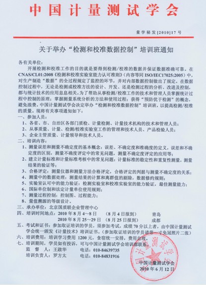 關(guān)于舉辦“檢測和校準(zhǔn)數(shù)據(jù)控制培訓(xùn)班”的通知