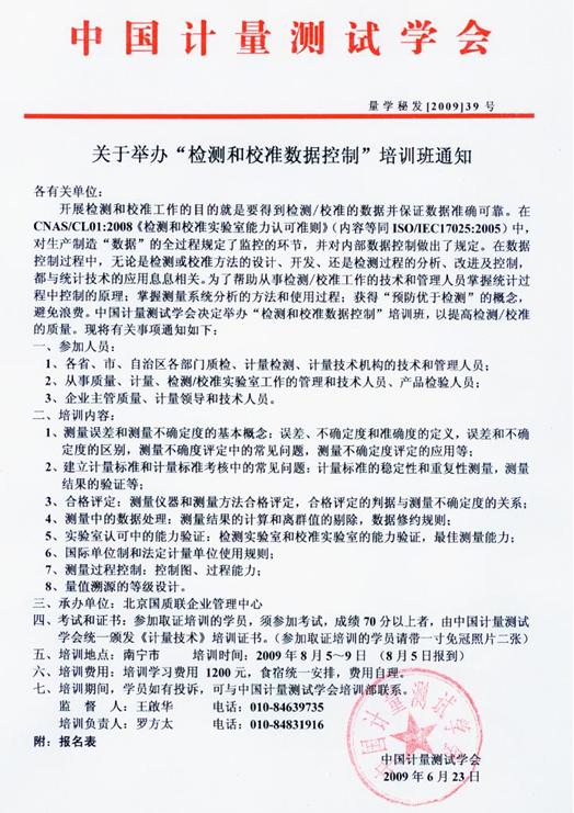 關于舉辦“檢測和校準數據控制”培訓班的通知