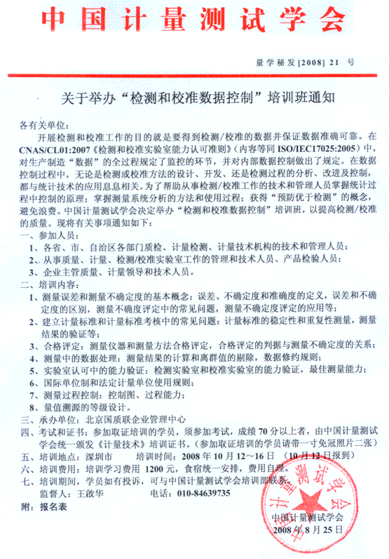 關于舉辦“檢測和校準數據控制”培訓班的通知