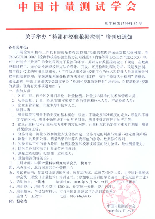 關于舉辦“檢測和校準數據控制”培訓班的通知