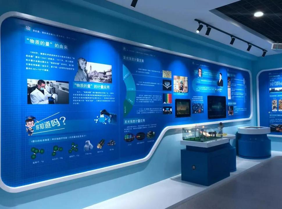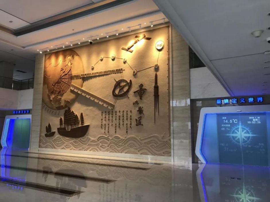 走進院科研基地的行政樓一層,首先映入眼簾的是展館入口處的一幅巨型計量文化墻,它以多個典型的計量元素,揭示出“量以載道”的深刻內涵。整幅畫面展示計量承載著國計民生,也傳載著科技文明。而“量值定義世界,精準改變未來”的計量箴言,鐫刻在旁邊的兩扇“計量之門” 上。