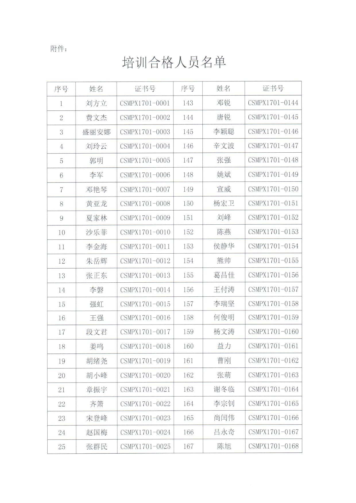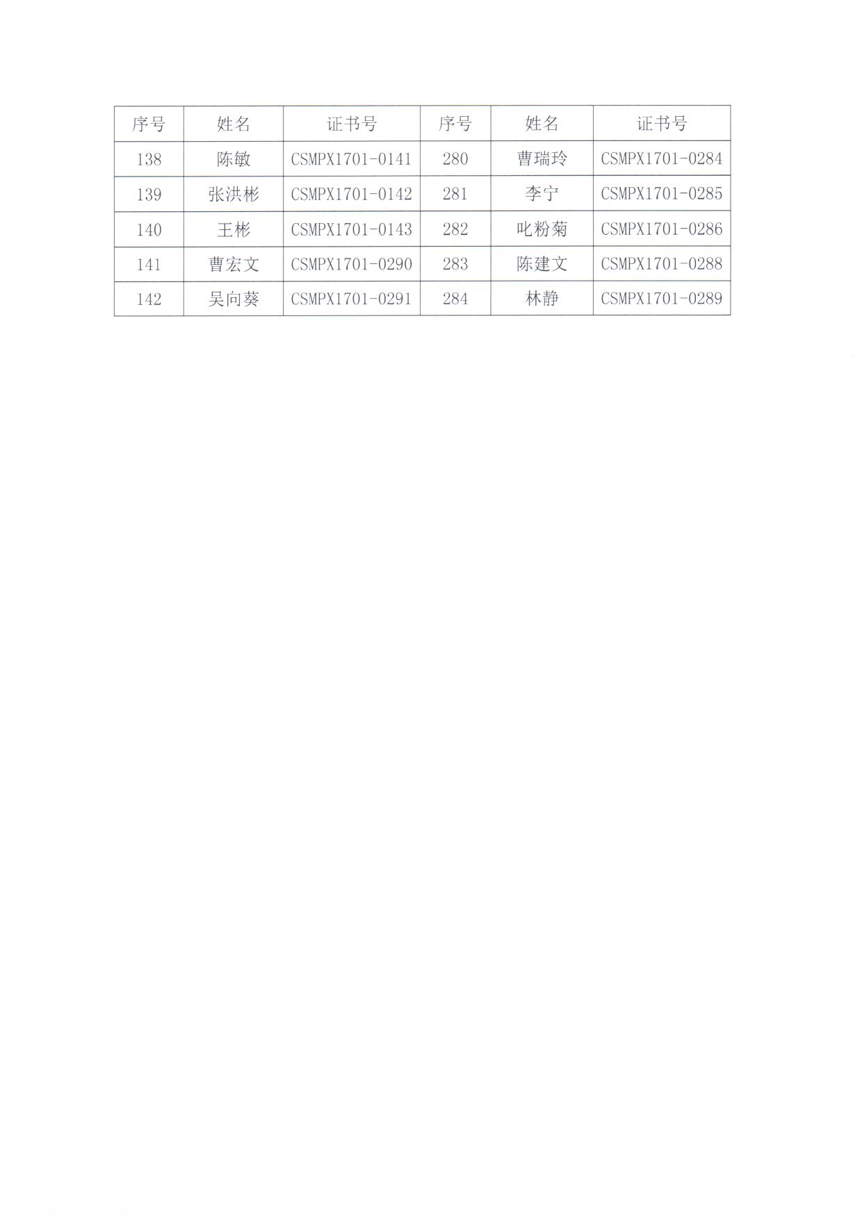 新版JJF1033-2016《計量標準考核規范》 培訓合格人員名單