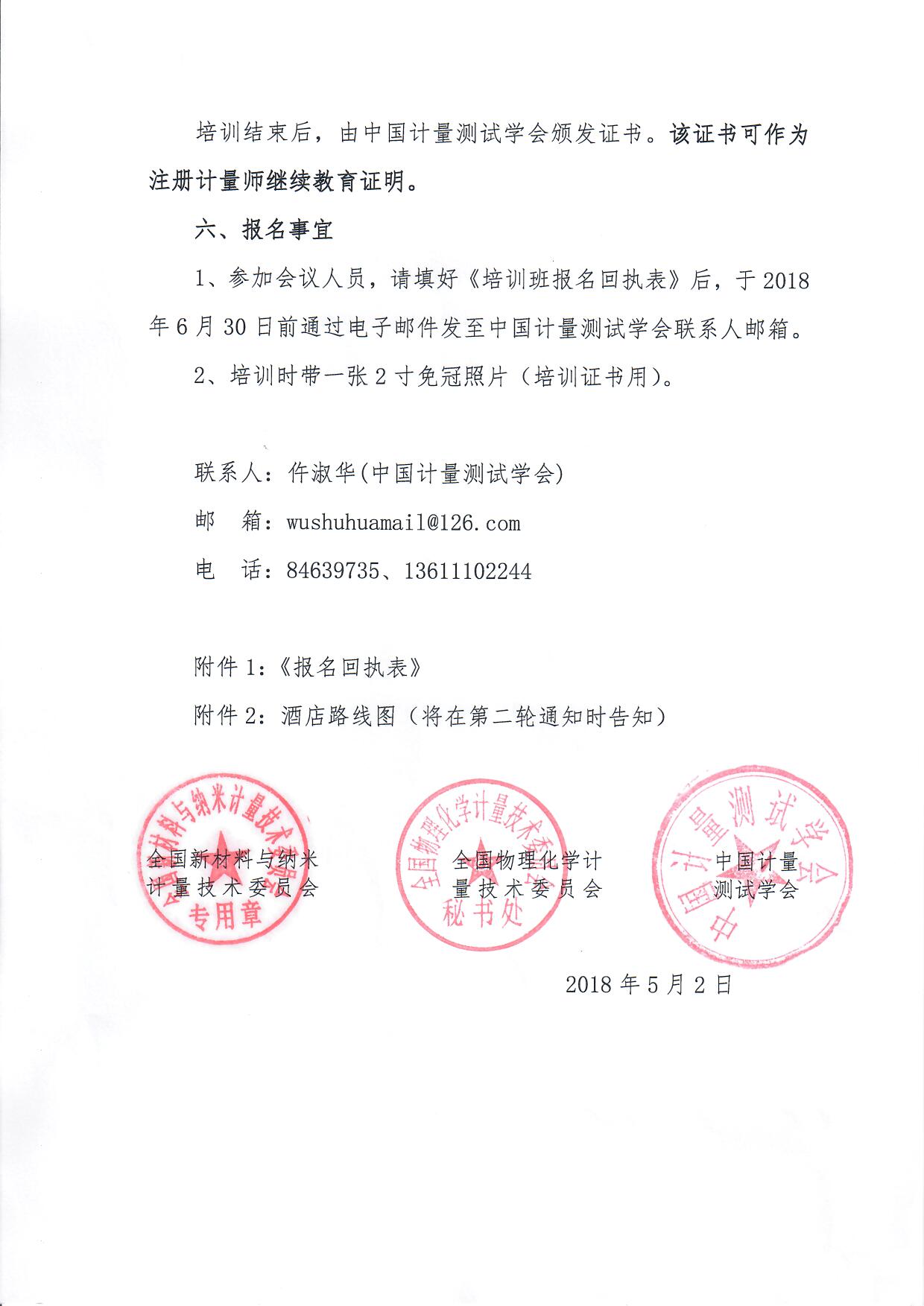 1、參加會(huì)議人員,請(qǐng)?zhí)詈谩杜嘤?xùn)班報(bào)名回執(zhí)表》后,于2018年6月30日前通過(guò)電子郵件發(fā)至中國(guó)計(jì)量測(cè)試學(xué)會(huì)聯(lián)系人郵箱。